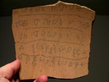 The pottery shard was discovered at excavations at Khirbet Qeiyafa near the Elah valley in Israel ‐‐ about 18 miles west of